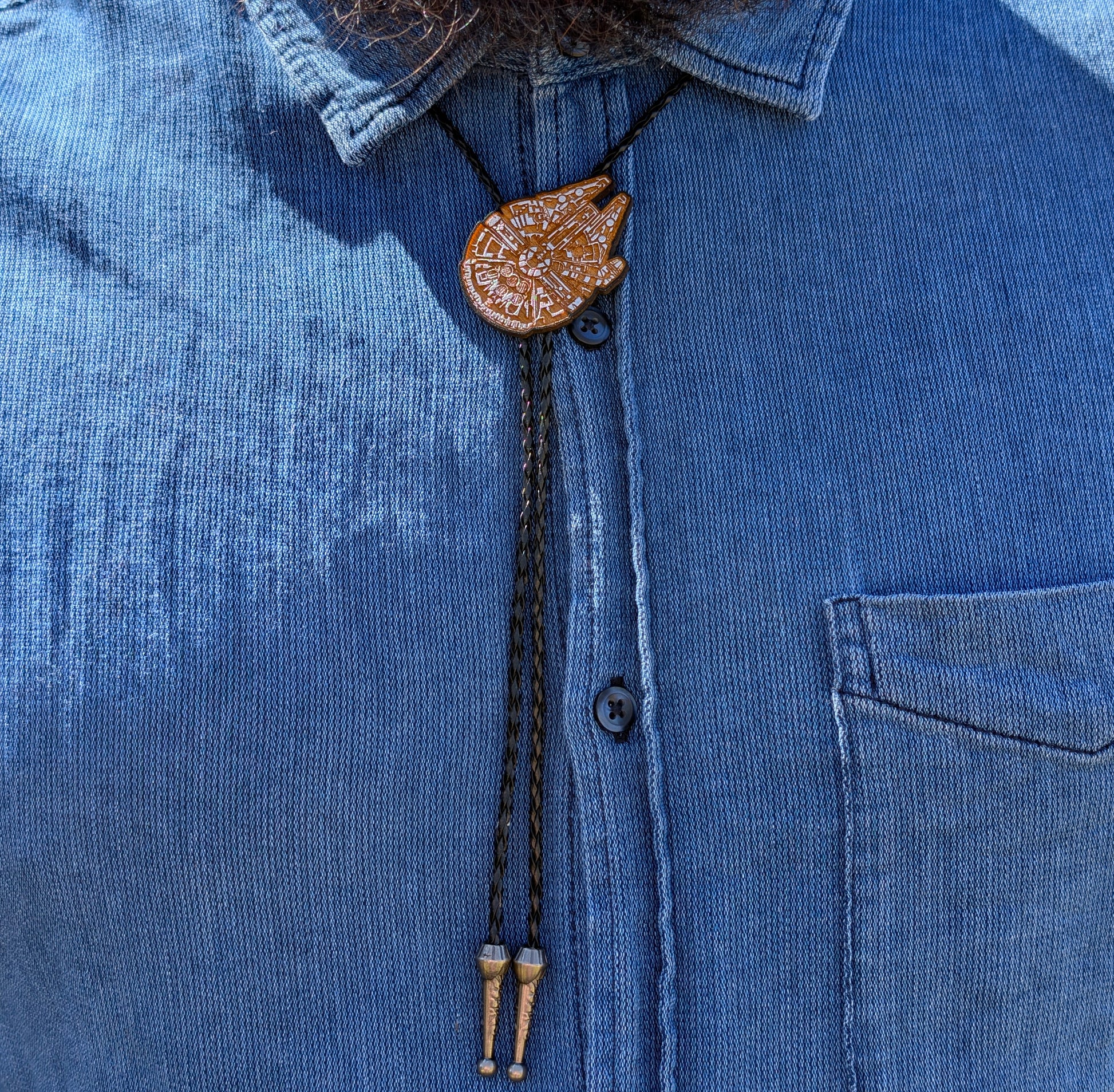 Millennium Falcon Star Wars Bolo Tie - Hand Painted Wood Bolo